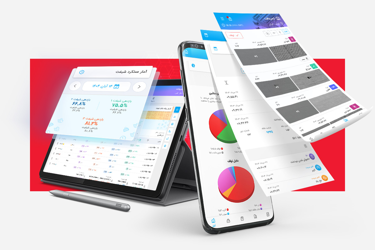 - آمار جامع عملکرد به تفکیک هر ماشین، کارخانه و هر شیفت کاری با در نظر گرفتن ظرفیت تولید